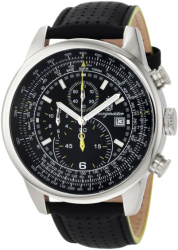 Burgmeister Melbourne, BM505-122, Gents black leather strap-gelb, black dial, Date, Tachymeter,