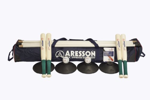 The ARESSON Teambuilder Rounders Set features 4 x Image Bats, 1 x Autocrat Ball, 1 x Bullet Ball, Rubber Bases, 4 x Posts, 1 x Rounders Bag and 1 x NRA Rules of the Game.