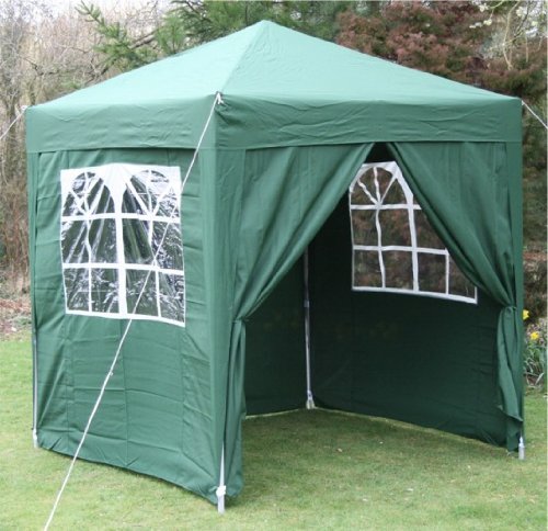 Fantastic Fully Waterproof GREEN pop-up gazebo 2.0mtr x 2.0mtr. Supplied with four side panels - two with church style windows, two with full length zippers, these can be attached in any combination allowing you complete freedom of location. Steel framed. Easy adjusting Guy ropes included. Supplied complete with a heavy duty zipped carrybag. WATERPROOF canopy manufactured from 190g PU coated soft touch polyester fabric with all seams taped sealed (as used in camping tent manufacture). Carriage: £10.00 within UK. Product Weight: 14kgs.