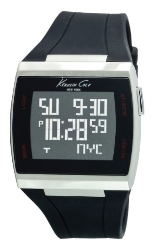 Packed with features designed to give your workouts a boost and keep your day on track, the Kenneth Cole New York Men's KC-Touch Strap Watch packs a stylish punch thanks to its thick black silicone strap and solid stainless steel barrel-shaped case. An easy-to-read digital display shows the day, date, and year along with the time and is easy to program thanks to clear function labels on the black-tone case. Dependable and a pleasure to wear, this watch boasts the precision of Japanese quartz movement and is water resistant to 165 feet (50 meters).